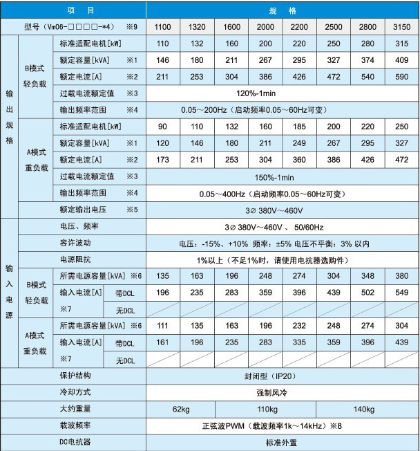 *1:額定容量是輸出電壓為400V時(shí)的容量。